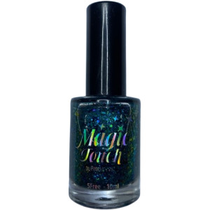 A topper full of multichrome flakies and turquoise holographic glitters.