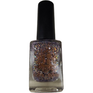 A soft purple jelly with platinum, orange and green glass flake with black matte and holo micro flakes.