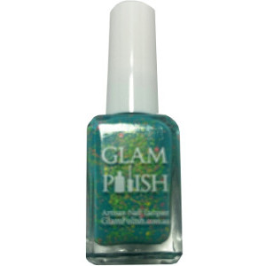 Aqua crelly with bright and neon glitter mix, and scattered holo flakies.