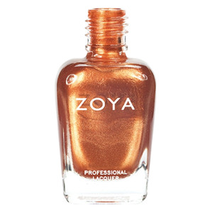 A shiny metallic copper with orange undertones and soft frosty gold shimmer