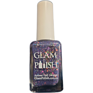 A deep purple crelly with neon glitter mix and scattered holo flakies.