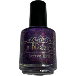 A bright purple base with subtle linear holo and pink to green iridescent flakies.