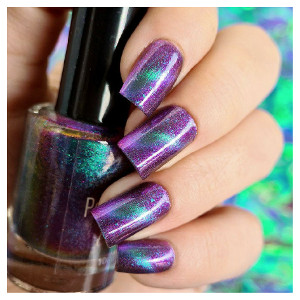 Turquoise/purple magnetic nail polish with purple background Inspiration : Tinkerbell from Disney