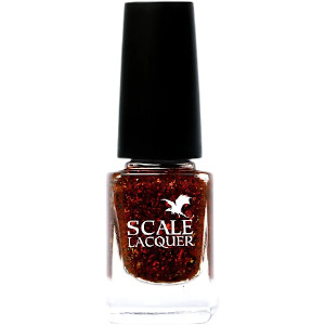 Red-orange glass with lots of multichrome red-to-orange flakes and black metallic flakes