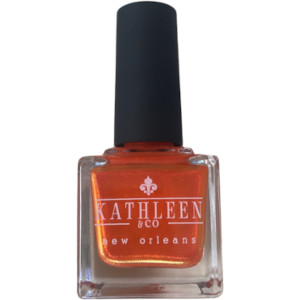 A deep orange base with fiery reddish-orange shimmer that shifts to gold and green at extreme angles.