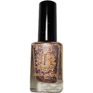 A lovely pink to orange rose glass flake polish with copper pink metallic flakes as well as a touch of holo micro flakes.