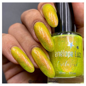 Neon yellow base with iridescent flakies and Aurora red Inspiration : A neon butterfly wing