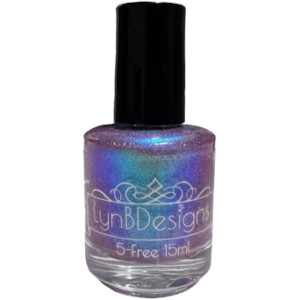 A purple base with intense teal to blue to purple shifting shimmer and added holo sparkle.